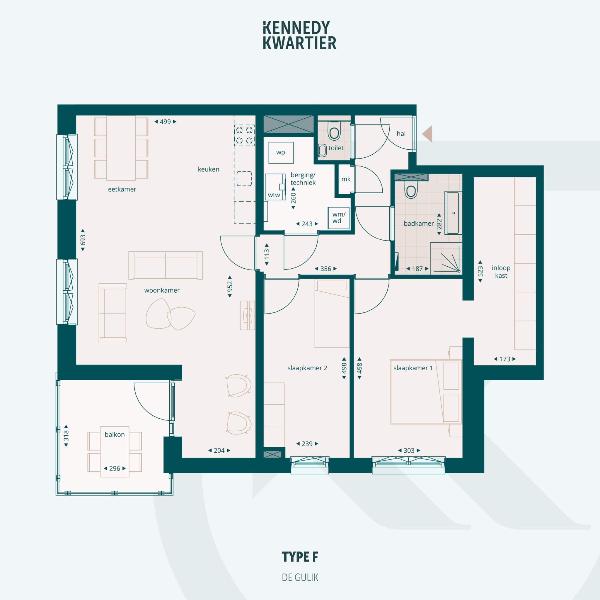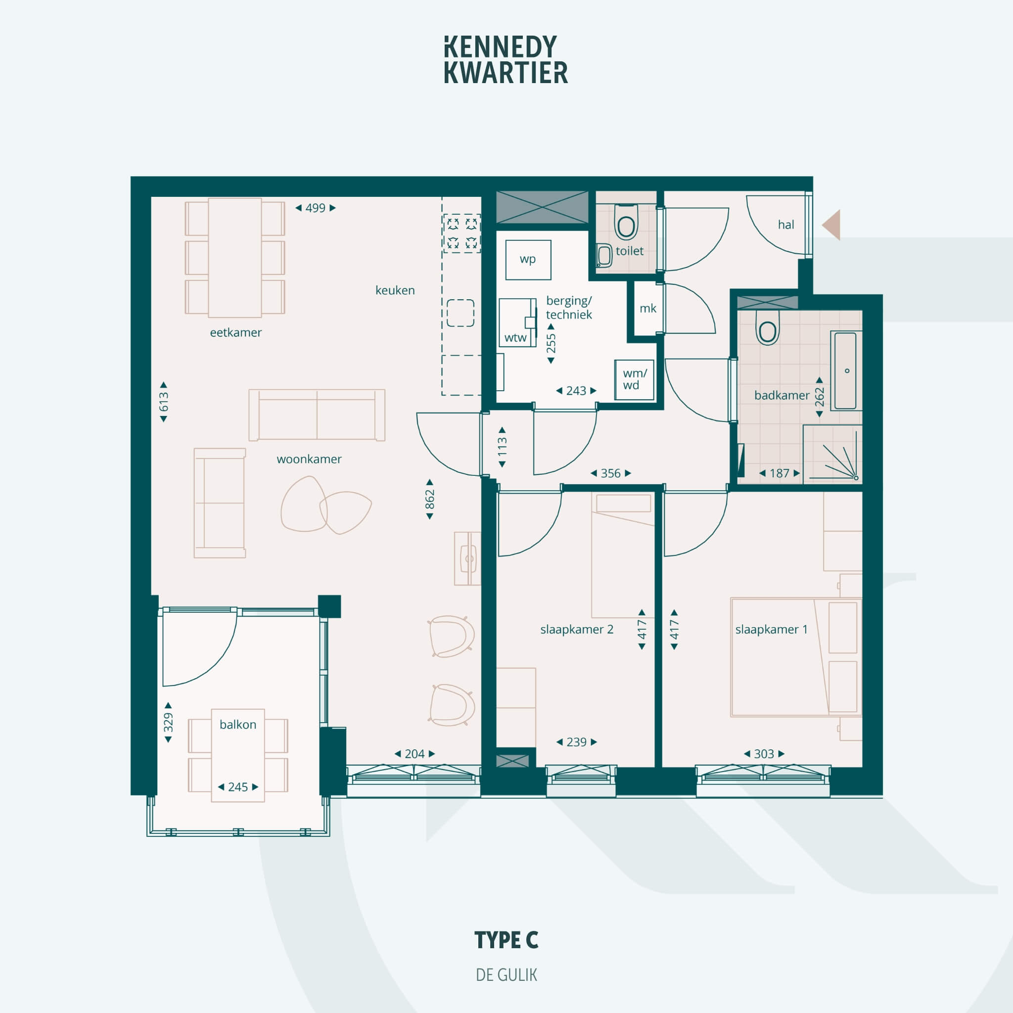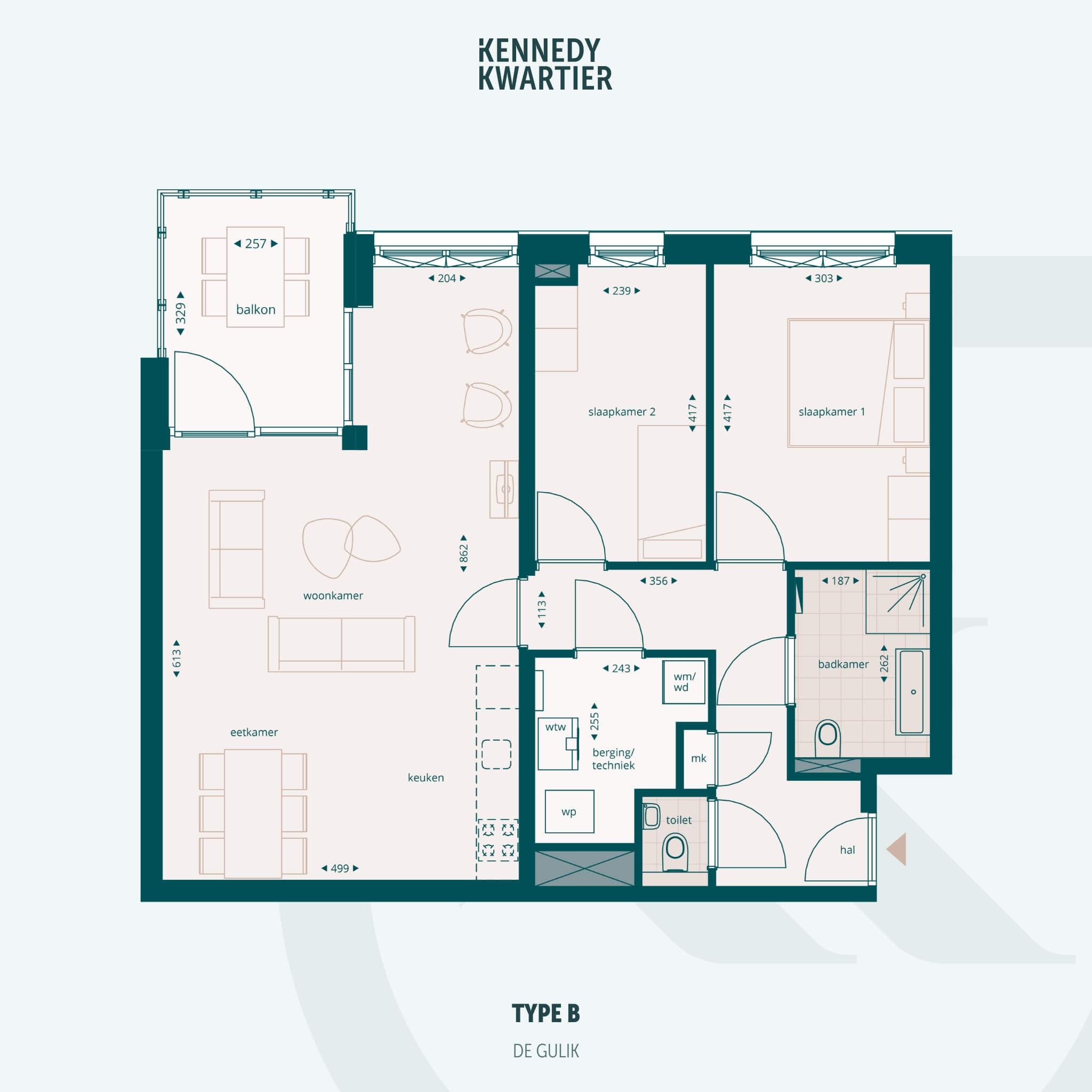 Aan de westzijde van de Keulsebaan ligt gebouw C, De Gulik, met in totaal 43 appartementen, verdeeld over maar liefst acht verschillende typen (A t/m H). Dat betekent volop keuze in grootte, indeling en ligging, passend bij diverse levensfases en woonwensen.