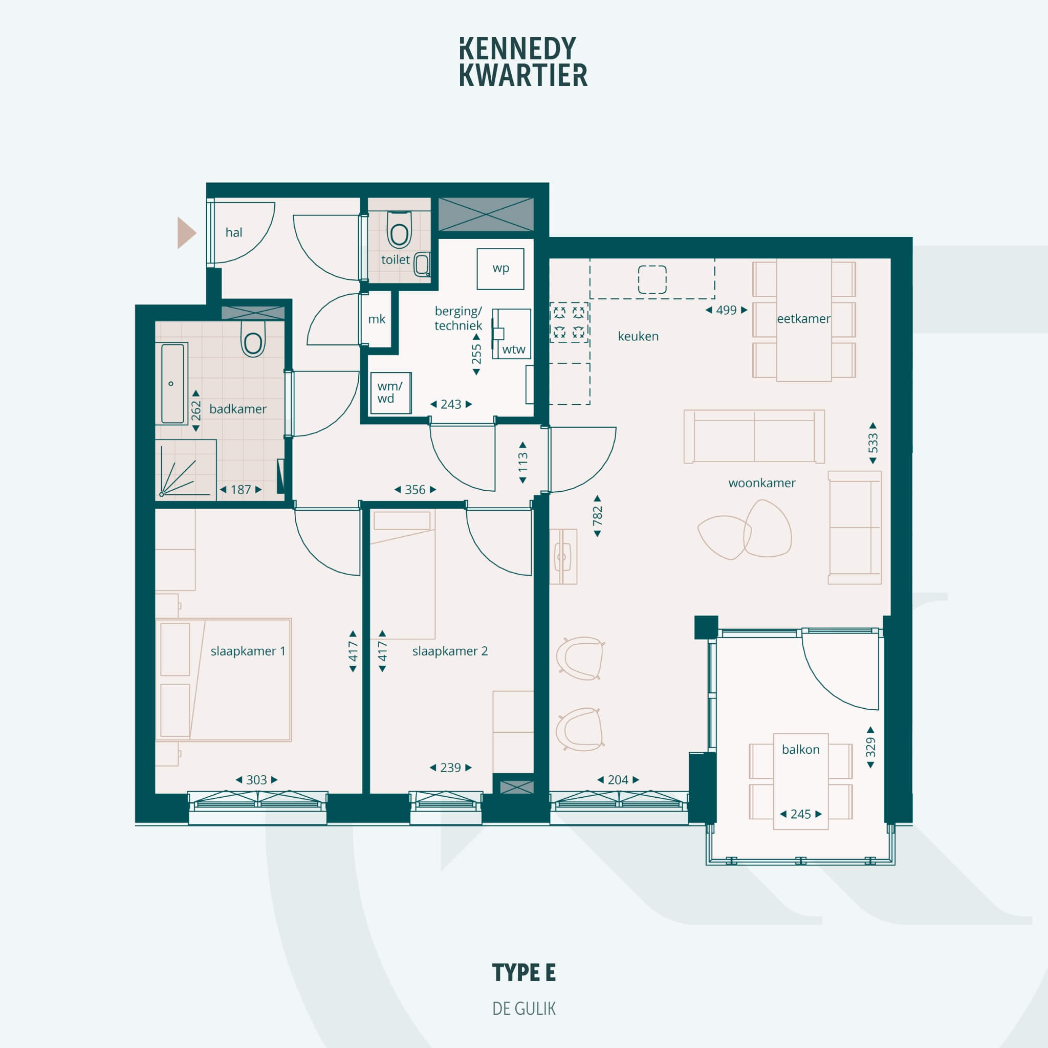 Dit appartement, gelegen aan de voorzijde van De Gulik, heeft een woonoppervlakte van circa 78 m² en combineert een praktische indeling met een comfortabele leefruimte. De woonkamer vormt samen met de open keuken één geheel, met ruimte voor een zithoek, een eethoek en een knusse leeshoek, grenzend aan het balkon.